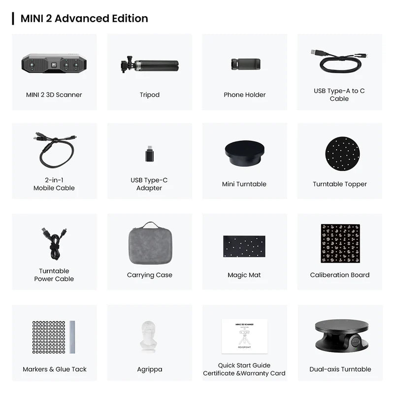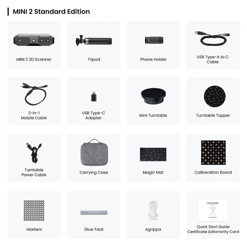 Capture the tiniest detail with the Revopoint MINI 2 3D scanner, the latest addition to the MINI series. Its powerful blue light metrological precision, upgraded hardware, and versatile accessories are ready to streamline 3D modeling for industrial inspection, customized healthcare, jewelry design, game modeling, and digitizing historical relics.