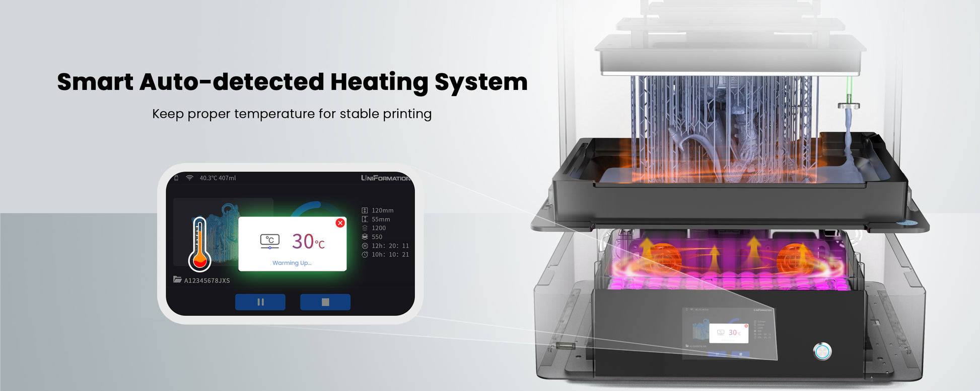Introducing the GK3 Ultra Resin printer from Uniformation with a bigger build volume, an auto-resin refill system and a heated chamber to ensure the best print quality.