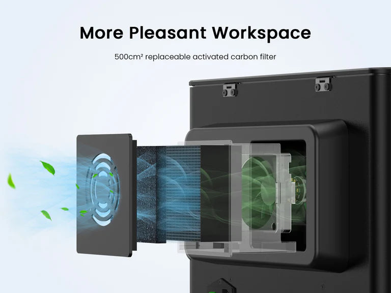 Detachable Air Filter: This curing station features a 500cm² carbon-activated filter that is magnetically attached to the back of the unit for easy installation and replacement. It is aimed to lower the resin odors, ensuring a safer and more pleasant workspace.